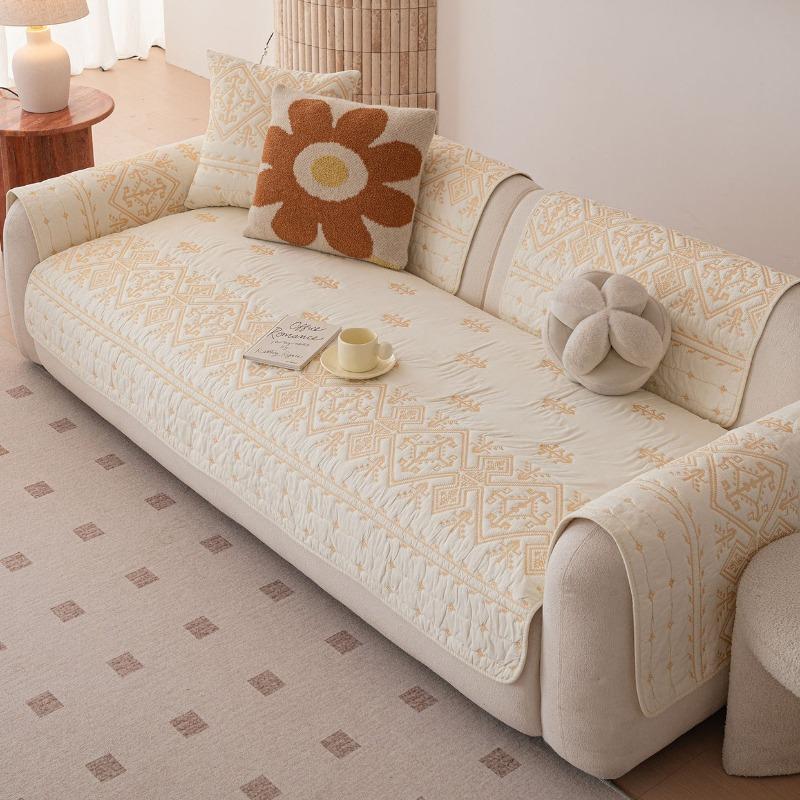 Nordic Style Embroidered Sofa Cushion Quilted Technology Couch Cushions Four Season Universal Backrest Armrest Dustproof Cloth Same Style Pillow Cover