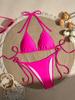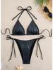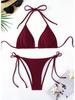 Women's Solid Color Triangle Bikini - Lace-up, High Elasticity, Quick-dry, Breathable, Removable Padding, Sexy Swimwear
