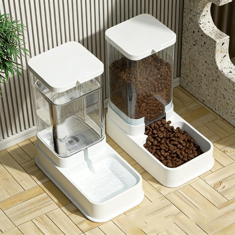 For cats and dogs1-2Gravity-Feed Plastic Automatic Pet Feeder and Waterer Set