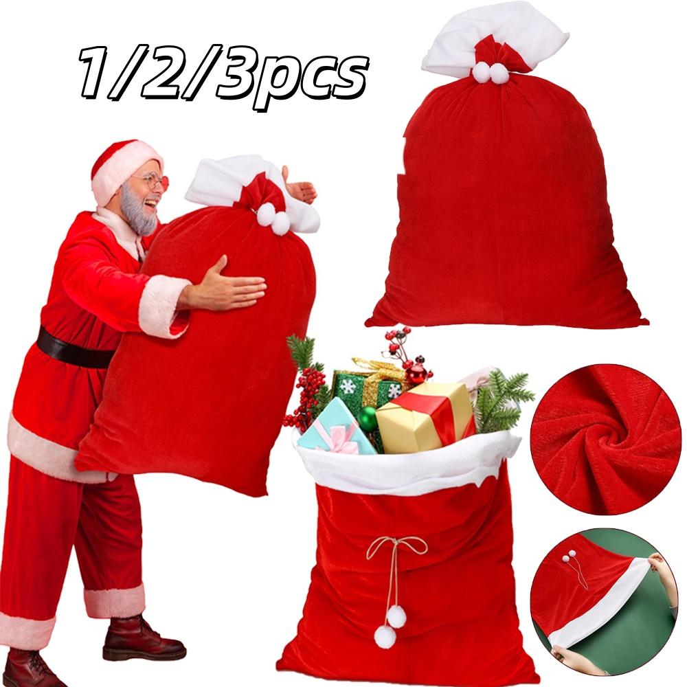 1-3pcs Christmas Large Santa Claus Gift Bags with Drawstring Red Velvet Xmas Party Gift Bag For Present Toys Xmas Decoration