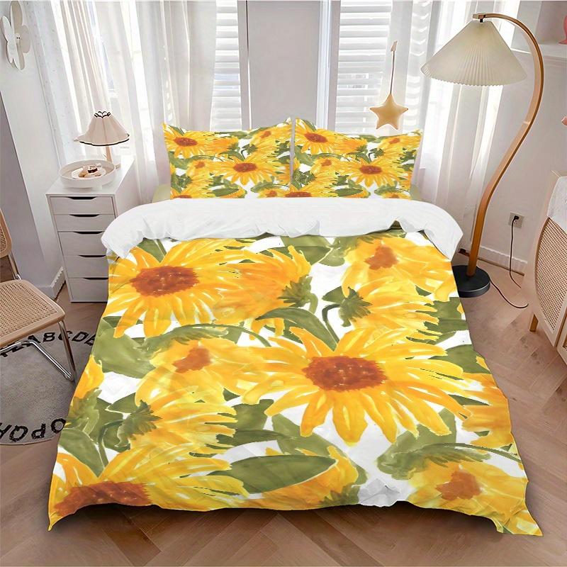 3pcs Sunflower Pattern Bedding Set, Ideal for Home Use, Suitable for Bedroom Decor (1*Duvet Cover + 1/2*Pillowcases, No Core) yy250821210
