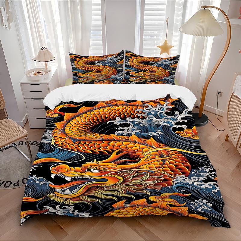 3pcs Dragon Wave Design Duvet Cover Set - Machine Washable, Includes 1 Cover and 2 Pillowcases, No Core Included yy251013136