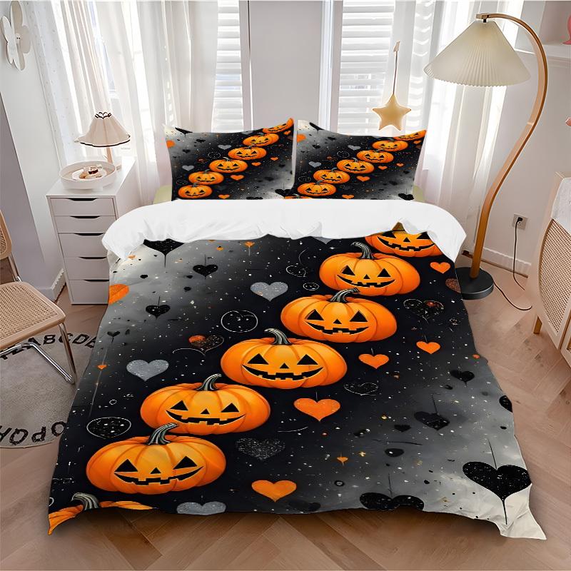 3pcs Halloween Pumpkins Duvet Cover Set, Cover For Bedroom Guest Room (1 Duvet Cover + 2 Pillowcase, Without Quilt), yy250922156