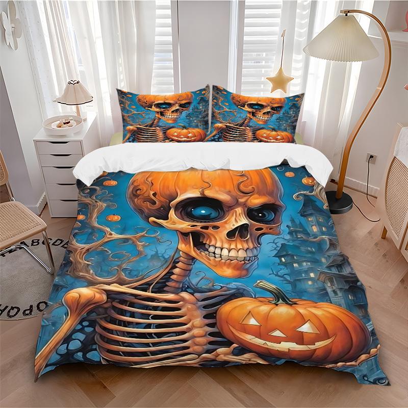 3pcs Halloween Skeleton Duvet Cover Set, Cover For Bedroom Guest Room (1 Duvet Cover + 2 Pillowcase, Without Quilt), yy250922144