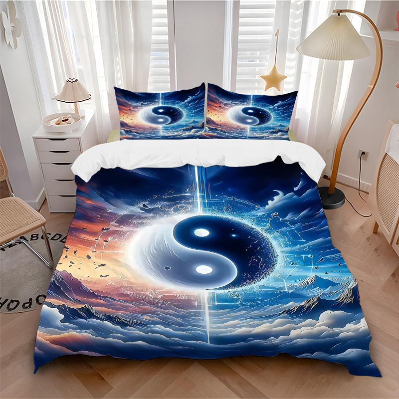 3PCs Yin Yang Symbol Design Cover Set, Breathable Fabric(1 Duvet Cover + 2 Pillowcases) (Without Quilt) yy250911186