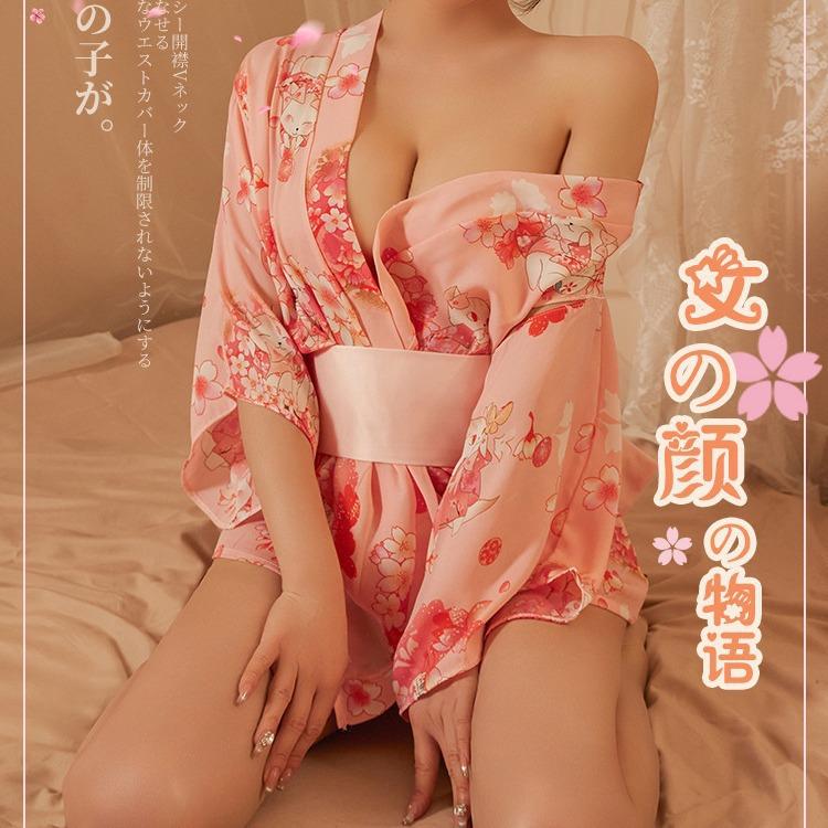 Sexy lingerie sexy Japanese retro print kimono waist hollow female passion uniform seduction nightdress