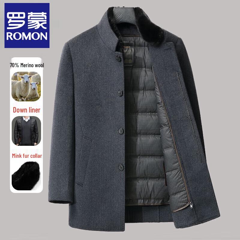 Romon Men's Mid-Length Wool Blend Coat with Down Liner