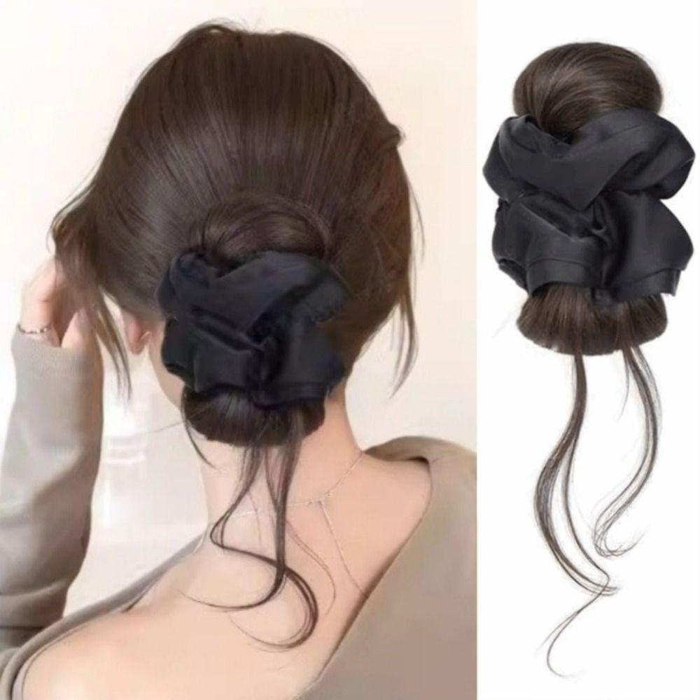 Elegant Synthetic Hair Bun Headband Scrunchie Flower Bun Head Wig Daily Use