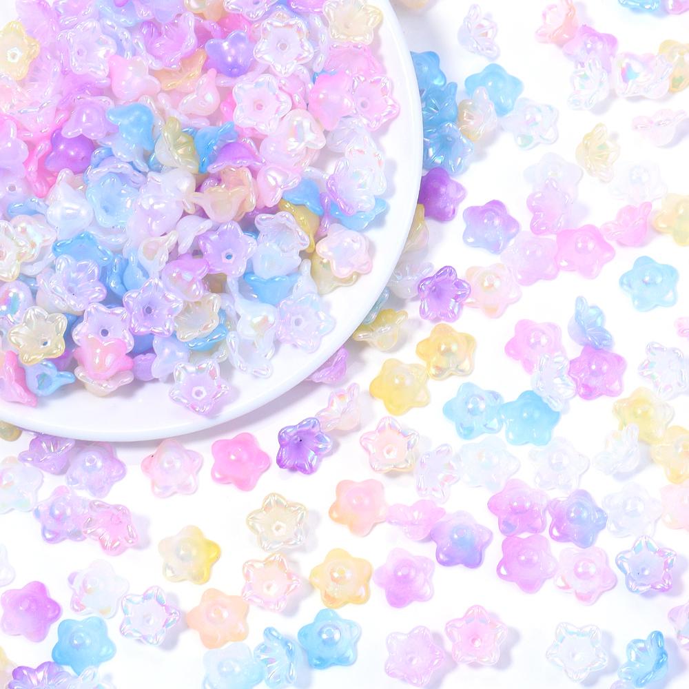 100pcs 6x12mm Flower Acrylic Beads Colorful Bell Orchid Flower Loose Beads For Jewelry Making DIY Bracelets Earrings Accessories