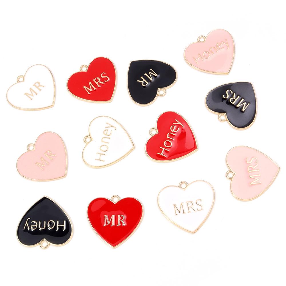 5pcs Alloy Heart Enamel Charms Colorful Romantic Letter Charms Pendant For Valentine's Day DIY Jewelry Making Necklace Bracelets