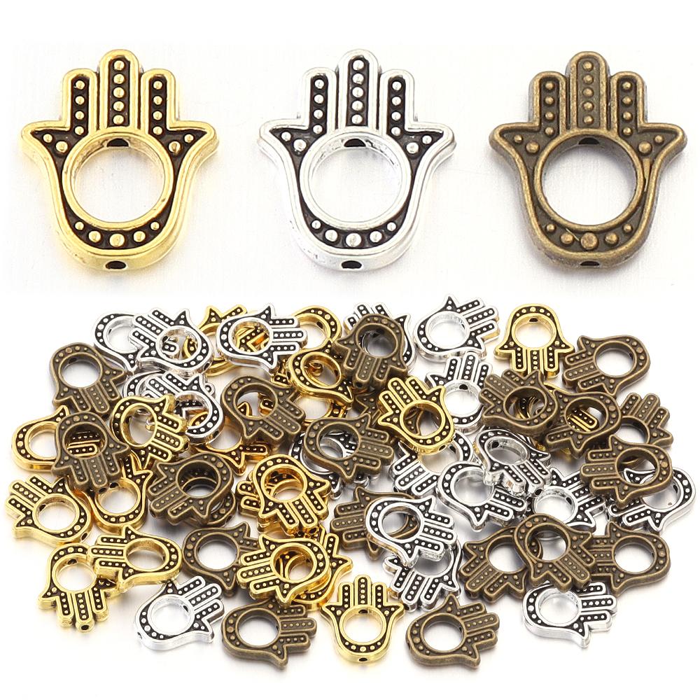 20pcs 3 Colors Hamsa Hand Beads 14.5x13mm Small Fatima Alloy Plam Spacer Beads For DIY Jewelry Making Handmade Necklace Findings
