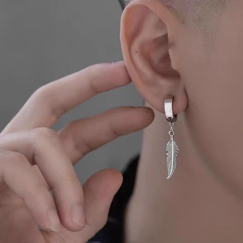 Feather Pendant Ear Clip - High-end Non-ear-hole Earrings for Men, Rugged and Cool Ear Bar Clasp