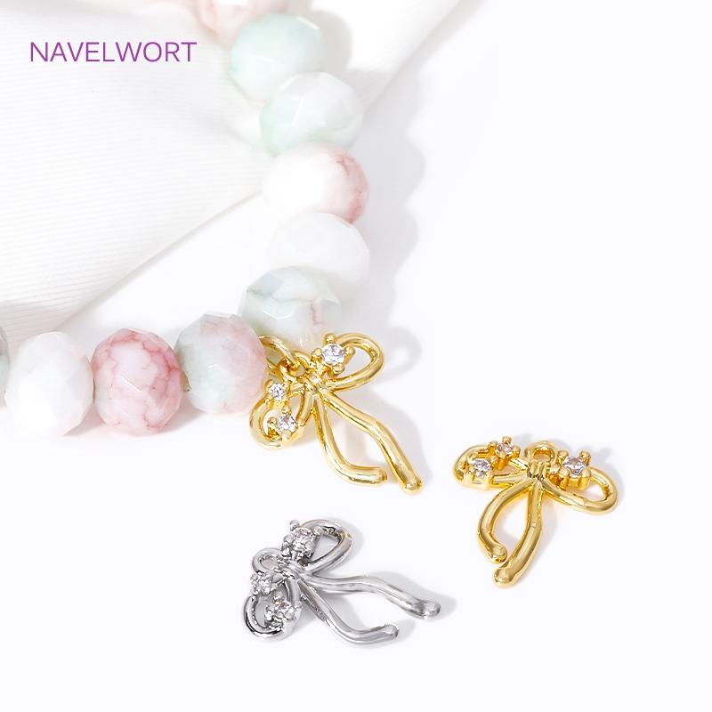 Trendy Bow Pendants For Jewelry 18K Gold Plated Brass Inlaid Zircon Charms Pendants For DIY Earrings Jewelry Making Accessories