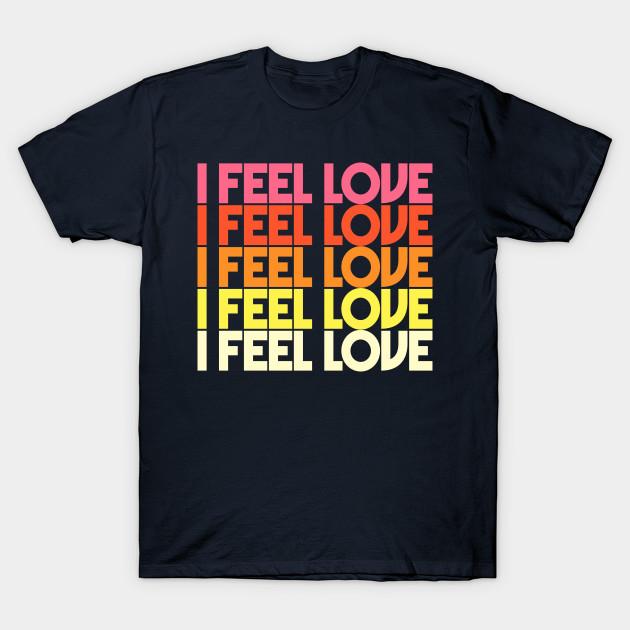 Men Black Print T-shirt I Feel Love - Retro Typographic Design No-Cut Transfer Paper Print Cotton Tshirt