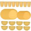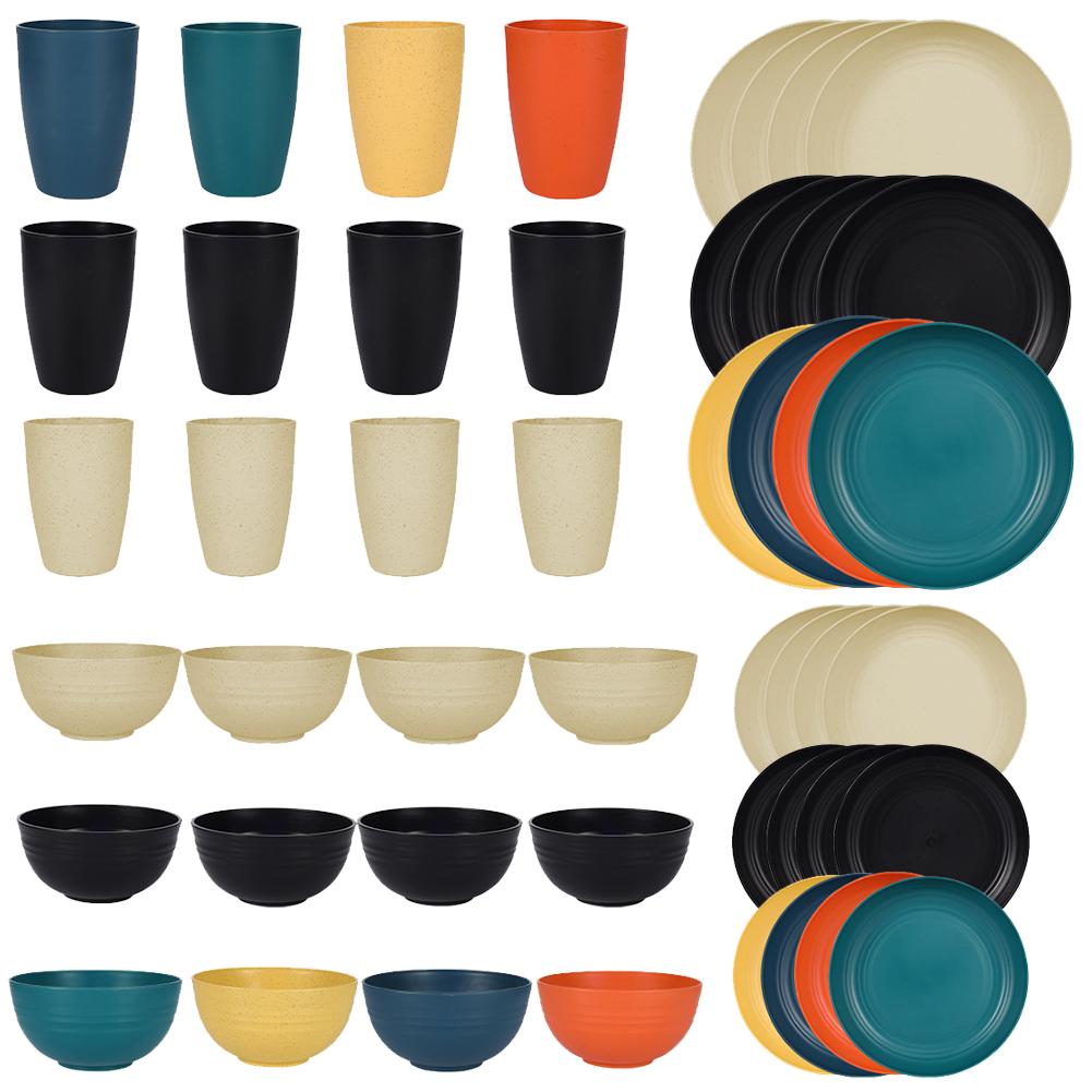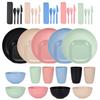 16Pcs Portable Cutlery Set Reusable Wheat Straw Dinnerware Suit Multi-Purpose Lightweight Dish Cup Bowl Set for Travel BBQ Use