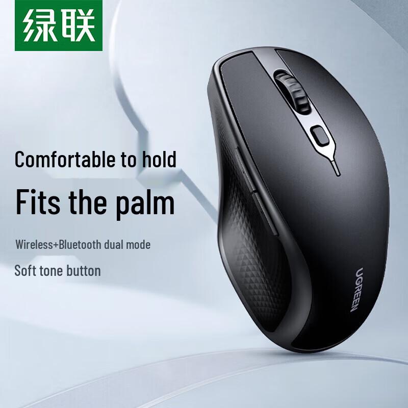 Experience comfort and quiet efficiency with the UGREEN MU101 ergonomic wireless mouse. Designed for right-hand users, this medium-sized dual-mode mouse offers seamless connectivity via 2.4G wireless and Bluetooth, allowing connection to two devices simultaneously. Its silent clicks and skin-like material ensure a comfortable and productive office environment. Powered by a dry battery, it's a versatile choice for multi-system compatibility.