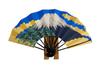 Japanese souvenir fan, featuring a maiko (geisha apprentice) design, made in Japan, with a traditional Japanese pattern. Silk blend, suitable for