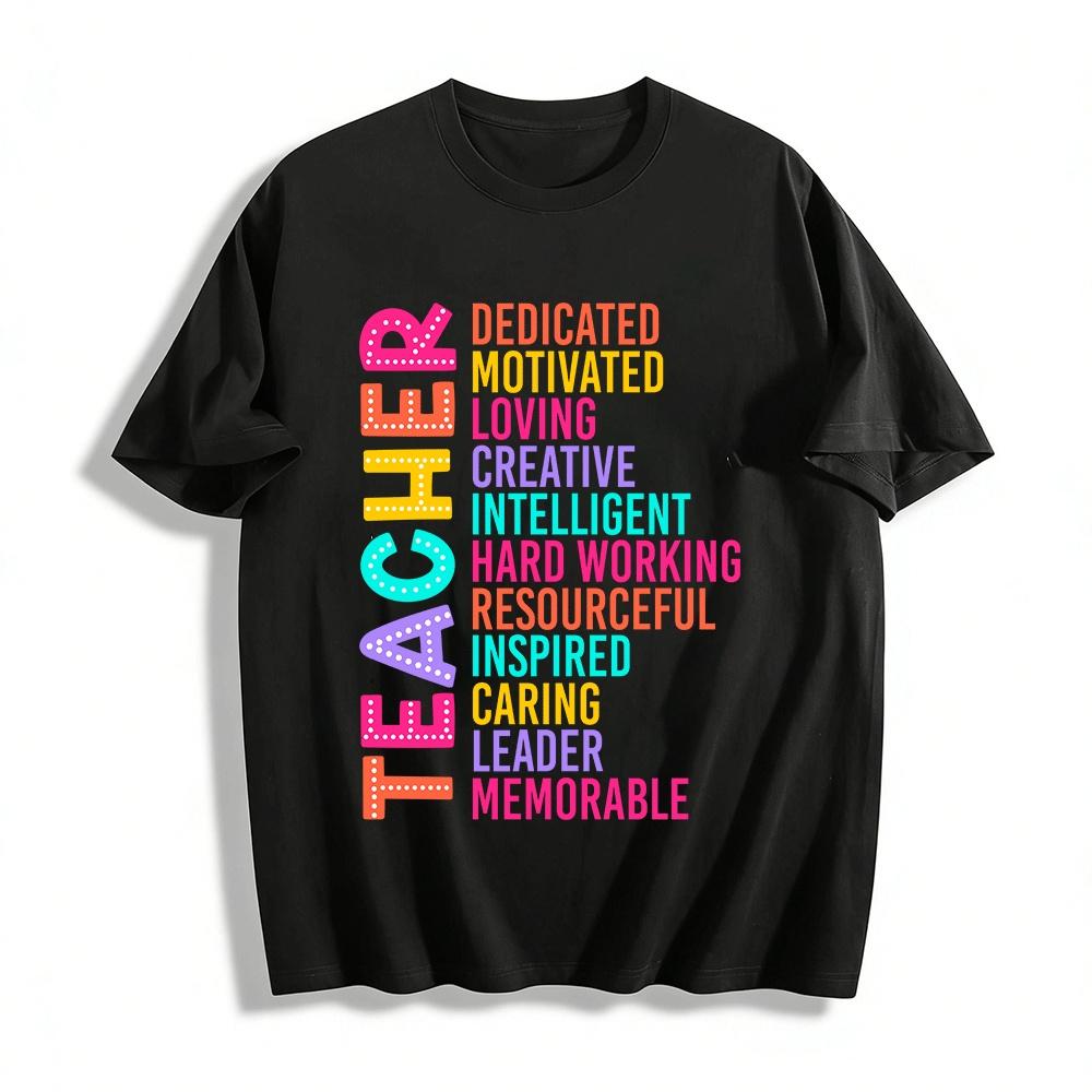 Teacher Traits Printed Top Dedicated Motivated Loving Creative Tee Pure cotton T-shirt