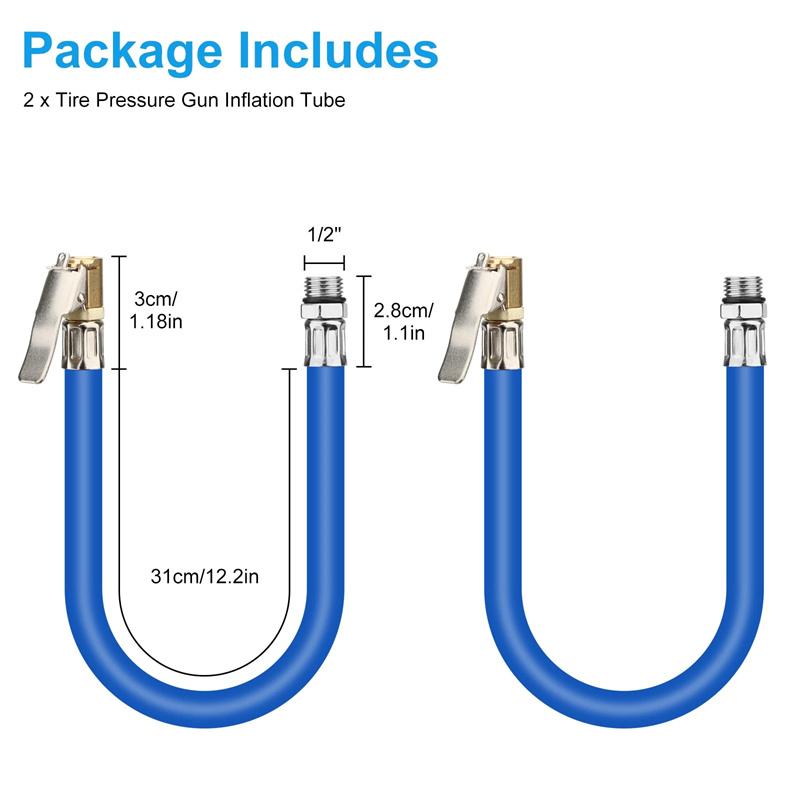 2 Pack Tire Inflator Hose with Locking Air Chuck - 12.2 Inch Rubber Extension Hose for Tire Pressure Guns
