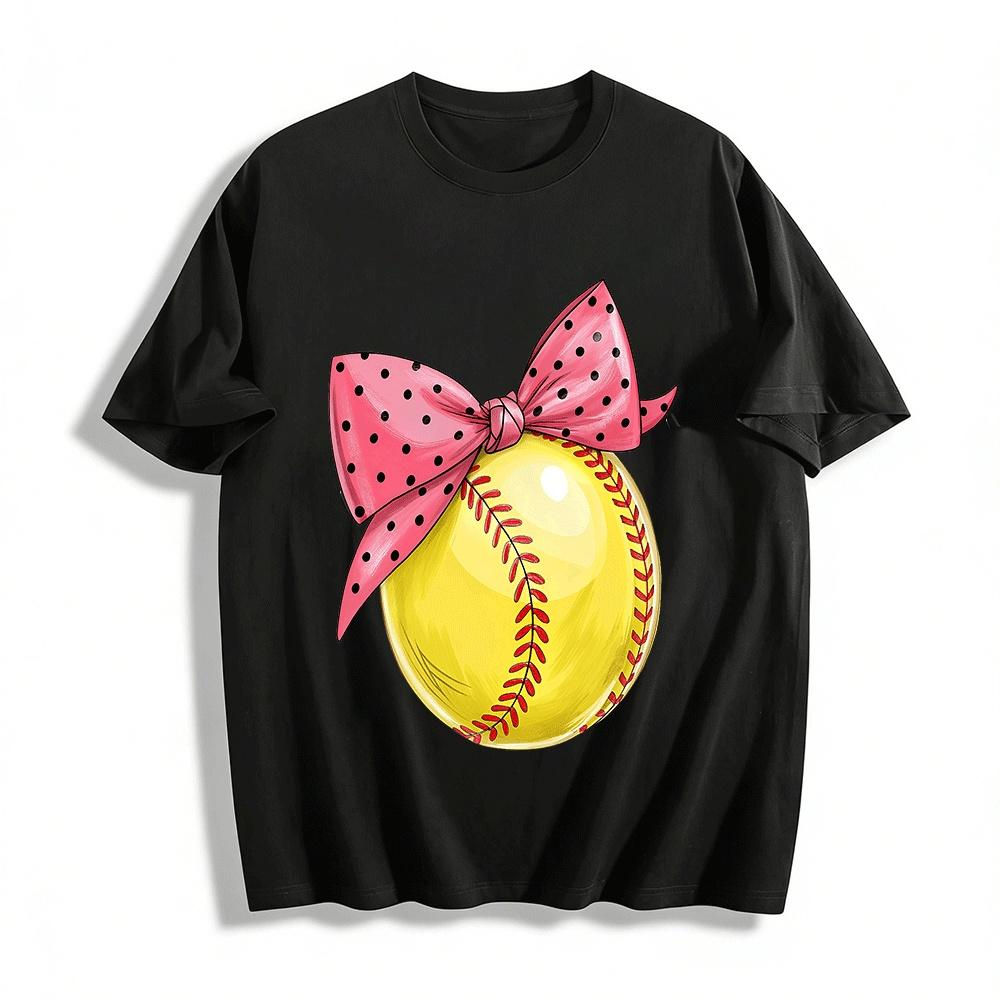 Cute Polka Dot Bow Softball Print Casual T-Shirt Pure cotton T-shirt