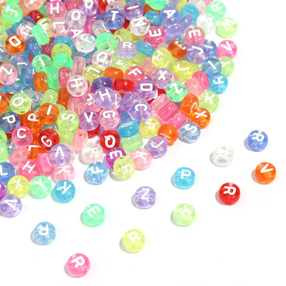 100pcs/Lot 7mm Mixed Letter Acrylic Beads Colored Transparent Round Flat Spacer Alphabet Beads For DIY Craft Bracelet Necklace