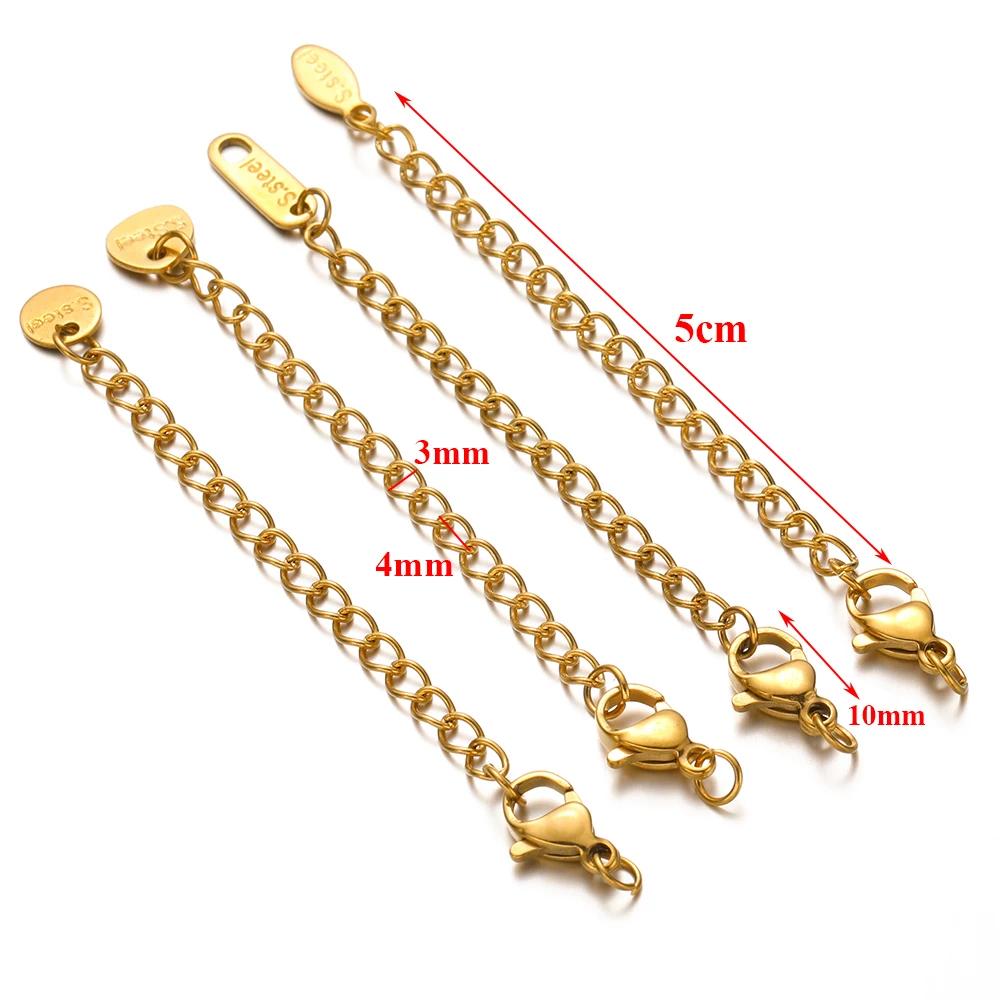 10pcs Stainless Steel Lobster Clasps 5cm Extension Extended Tail Chains for DIY Jewelry Making Bracelet Necklaces Connectors