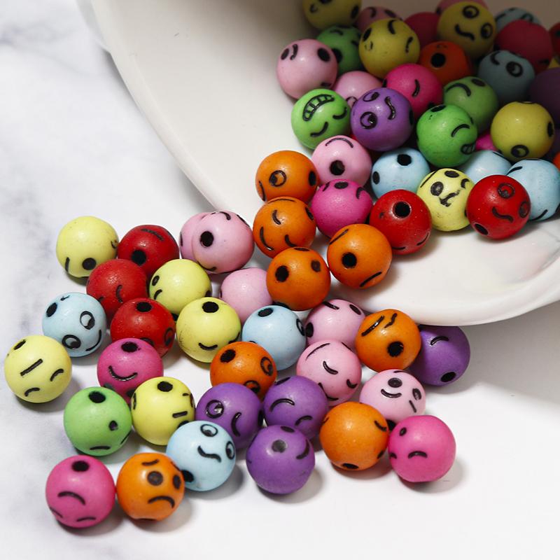 100Pcs/lot Acrylic Beads Mix Color 7.8mm Facial Expression Beads Spacer For Jewelry Making Handmade Diy Bracelet Necklace