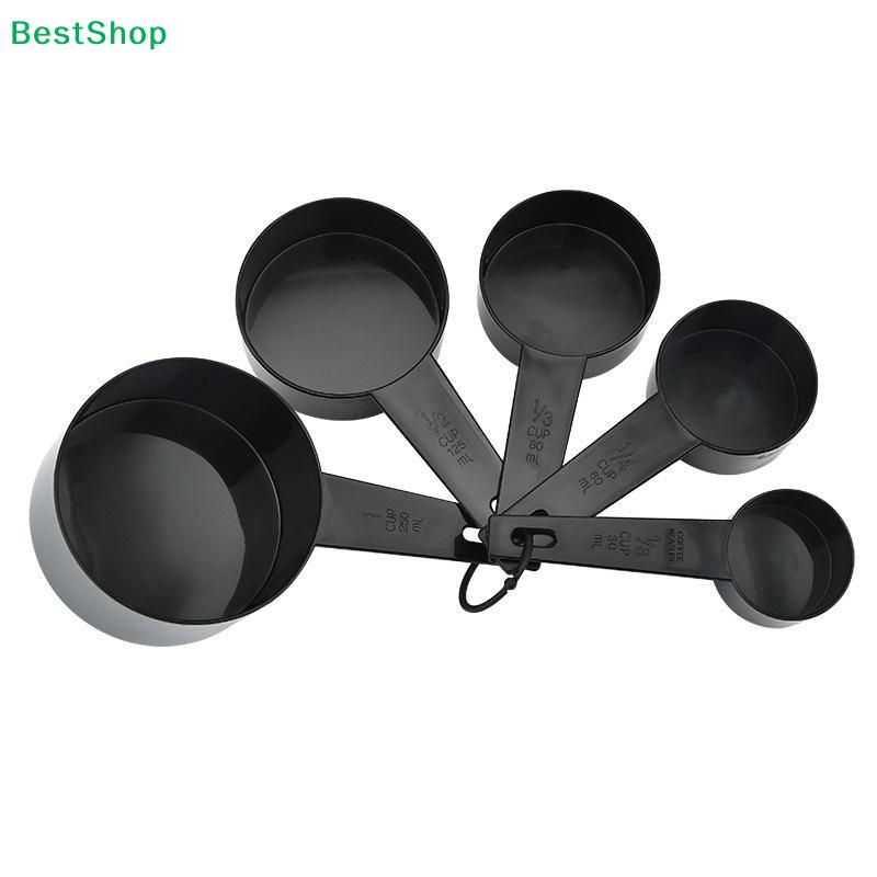 5-Pack Black Measuring Spoons Set - Stackable Plastic Measuring Spoons with Hanging Ring for Baking & Cooking