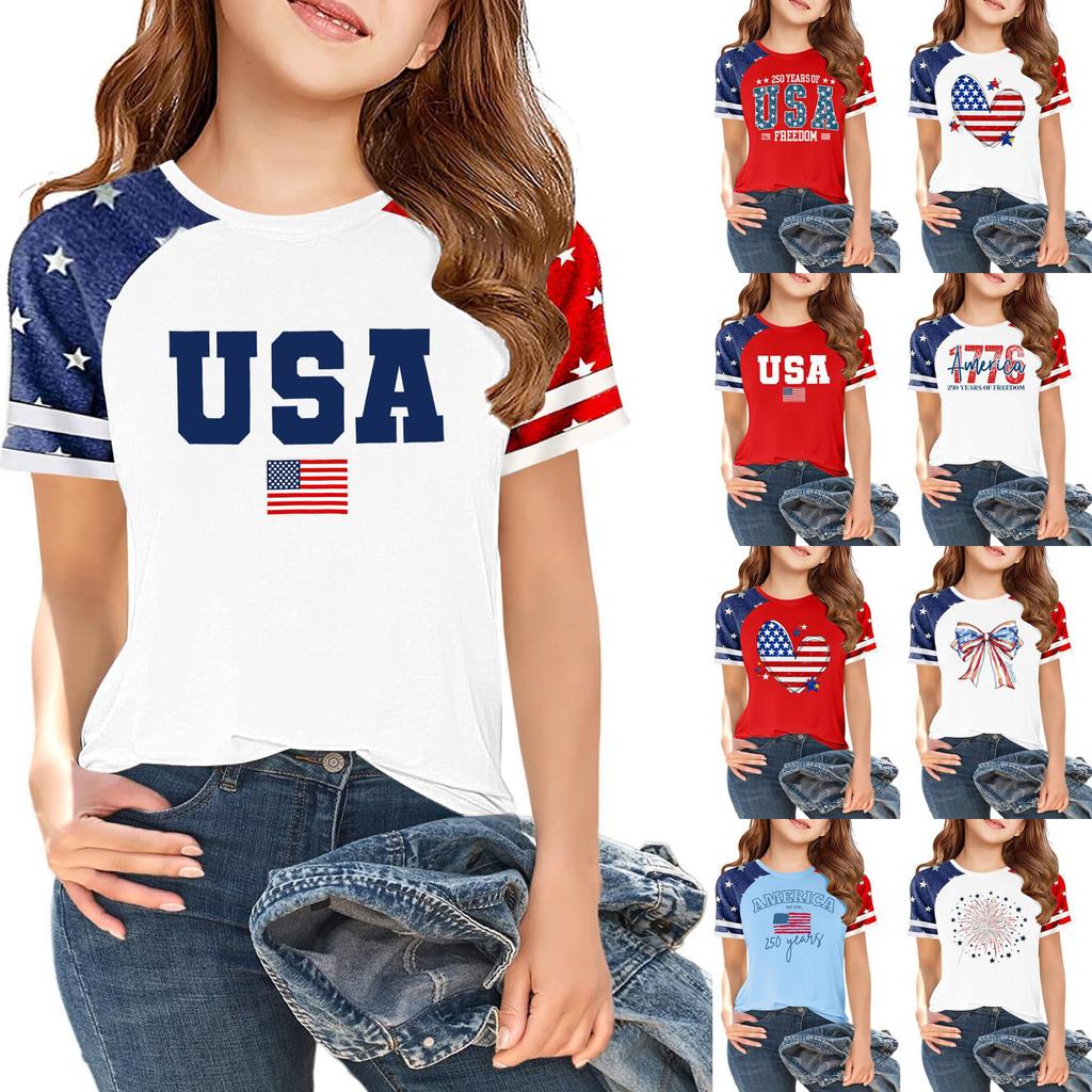 Children's Independence Day Printed Round Neck Short Sleeved Casual T-shirt