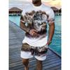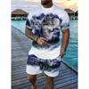 Men's Wolf Pattern Printed T-shirt and Shorts Set Summer Casual Sports 2pcs