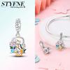 Authentic Original Charm Bead Components Copper Metal Dreamy Blue Stars Cat Pendant Bead Component Compatible With Charm Bead Components Plata