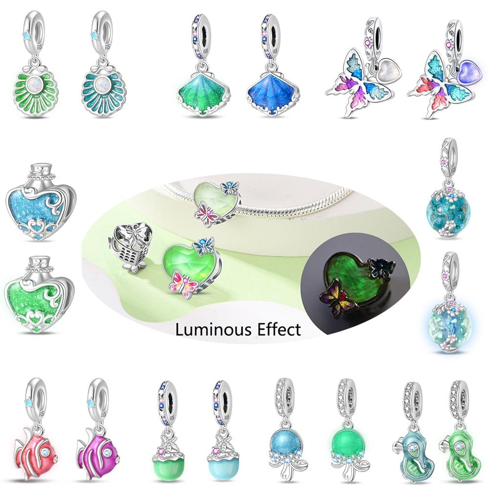 Shining Night Light Butterfly Seahorse Marine Life Copper Metal Plated Dangle Charm Bead Component Compatible With Brand Bracelet High Quality Fine