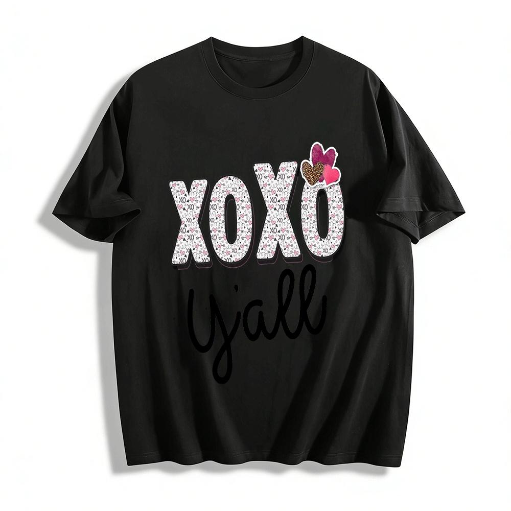 XOXO Y'all Heart Print Casual Top Retro American Style Versatile T-Shirt Pure cotton T-shirt