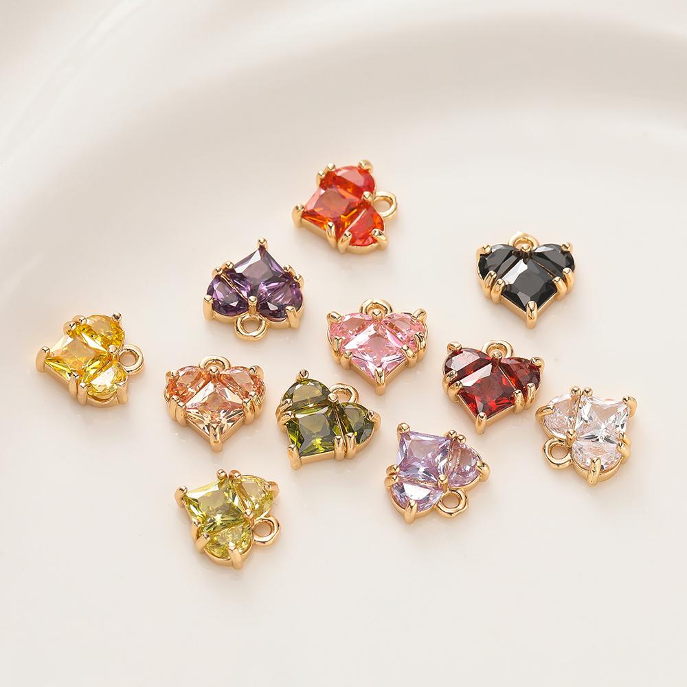 2Piece/Lot 18K Gold Color Plated Heart Charms Pendants with Zircon for DIY Bracelet Necklace Jewelry Making Accessories