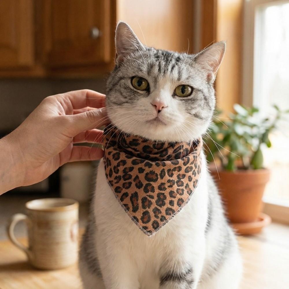Multipurpose Leopard Print Saliva Towel Adjustable Cat Saliva Towel Pet Triangle Scarf Party