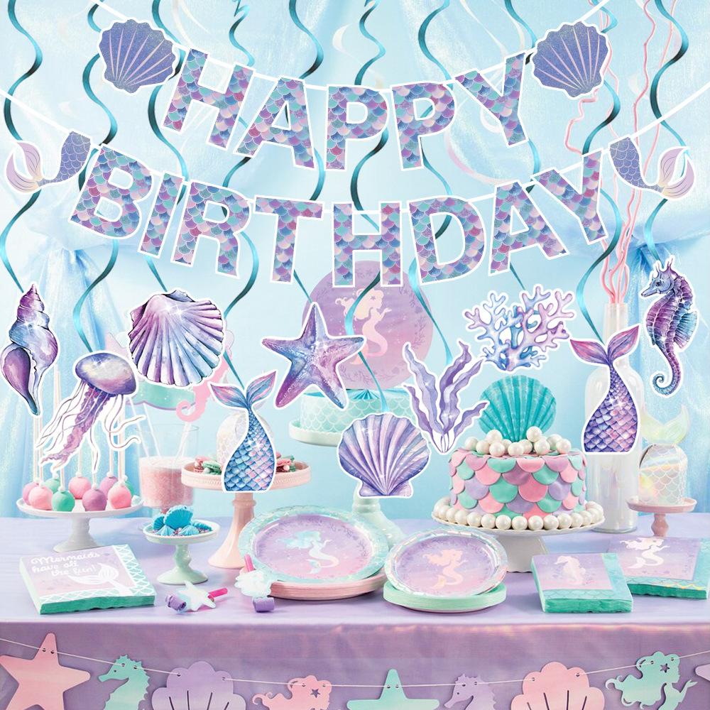 1 Set Mermaid Theme Garlands Pendants Seaweed Shell Jellyfish Conch Spiral Under The Sea Theme Girls 1st Birthday Party Decor