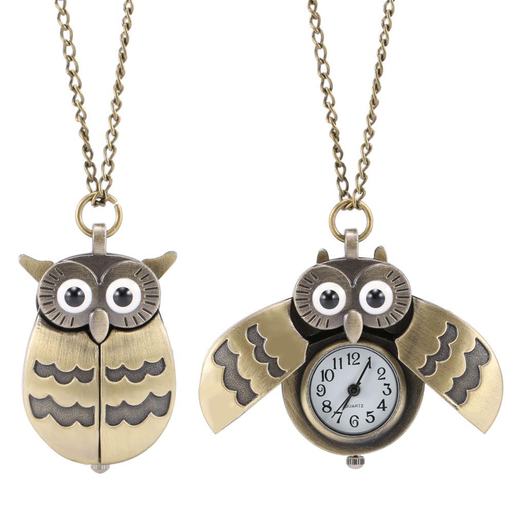 Fashion Vintage Men Women Alloy Retro Owl Shape Clock Pendant Long Necklace Chain Watches Birthday Gifts