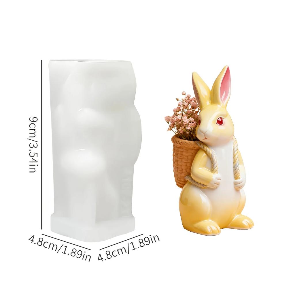 3D Easter Bunny Silicone Mold DIY Cute Animal Basket Rabbit Vase Ornaments Casting Molds Home Plaster Concrete Craft Gift Decor