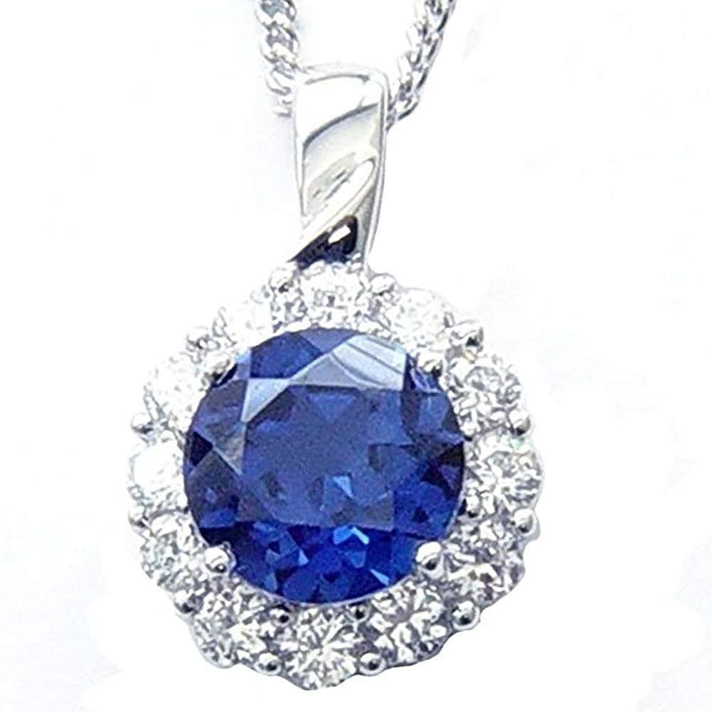 [Your and My Jewelry Box] Silver Synthetic Sapphire Pendant Necklace, Large 2.0 Carat [September Birthstone] 14205 [Jewelry] [Gift Wrapping Available]
