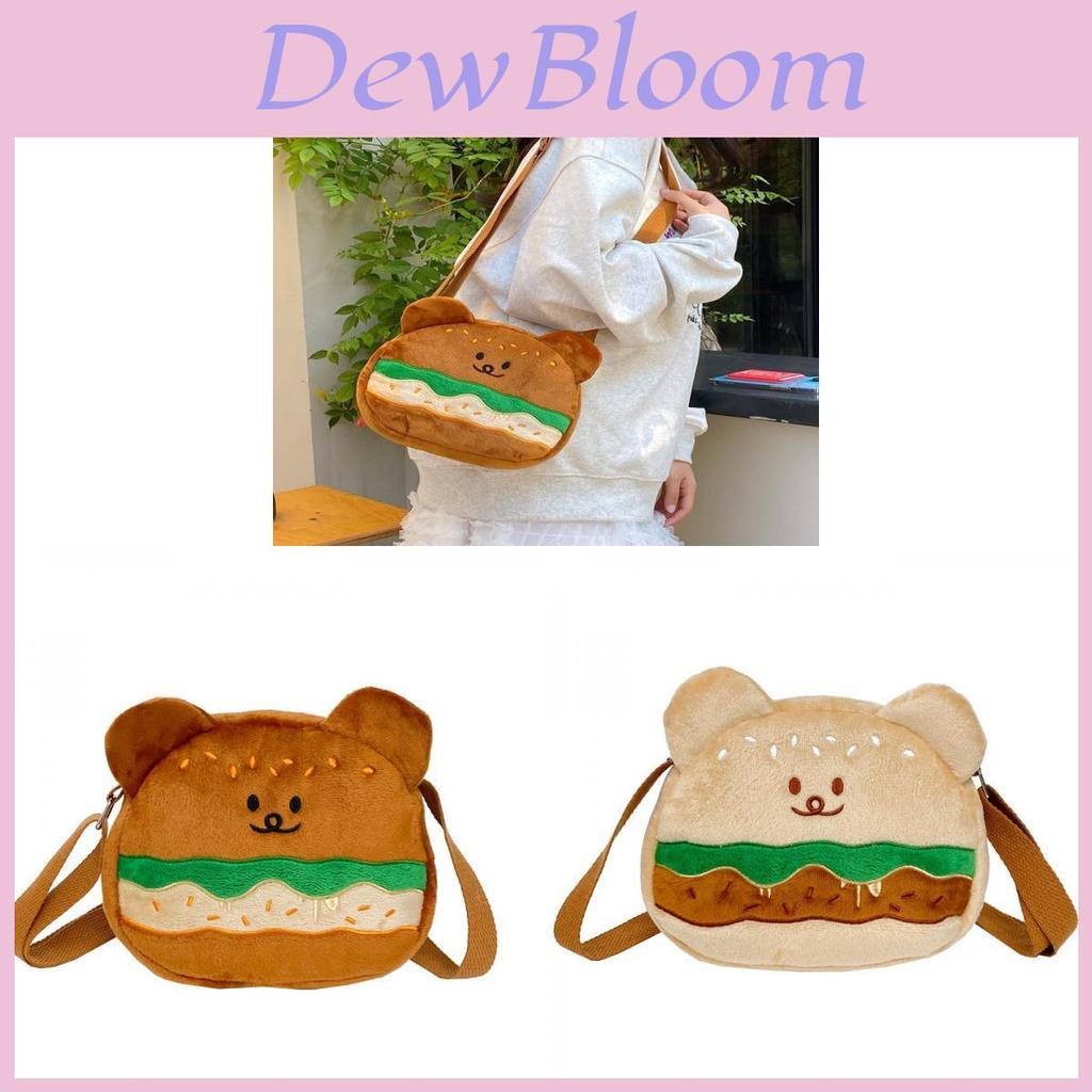 Soft Velvet Hamburger Bear Crossbody Bag With Embroidery For Daily Use