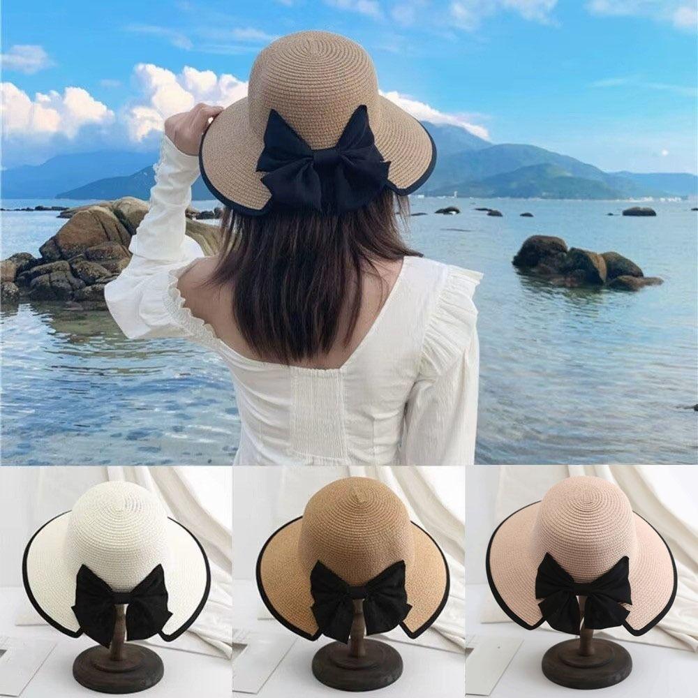 Wide Brim Straw Weave Sun Hat Large Bow Bowknot Sun Cap Elegant Sunscreen Bucket Hat Beach