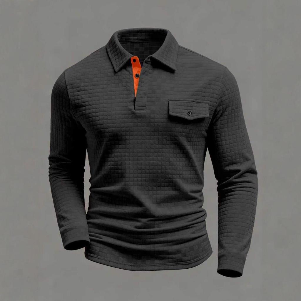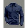 Spring Men's Long Sleeve Plaid Polo Shirt Button Pocket Sports Polo Shirt