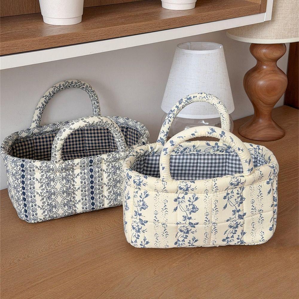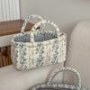 Hand-held French Vine Handbag Printed Floral Organizers Basket Laundry Storage Basket Home Office