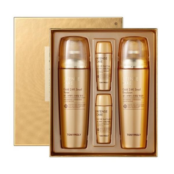 A premium anti-aging skincare set enriched with 24K gold and snail mucin to deeply nourish, repair, and revitalize the skin. This luxurious duo helps improve skin elasticity, reduce the appearance of fine lines, and restore a radiant glow. The rich yet fast-absorbing formulas deliver intense hydration while strengthening the skin barrier. Includes travel-size miniatures for convenient skincare anytime, anywhere.