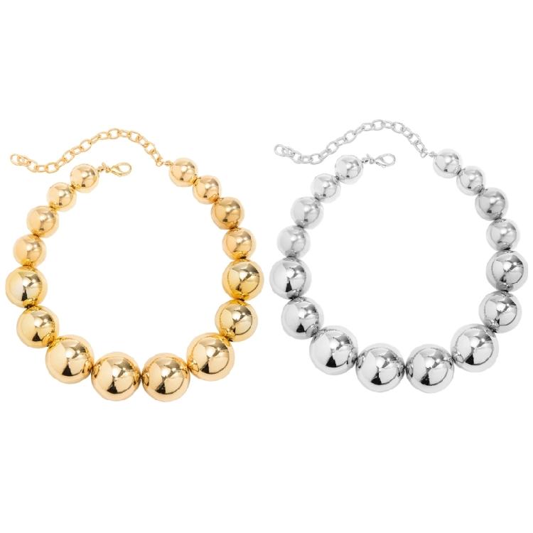 Vintage Big Beads Choker Necklace For Women Girls Exaggerated Clavicle Chain