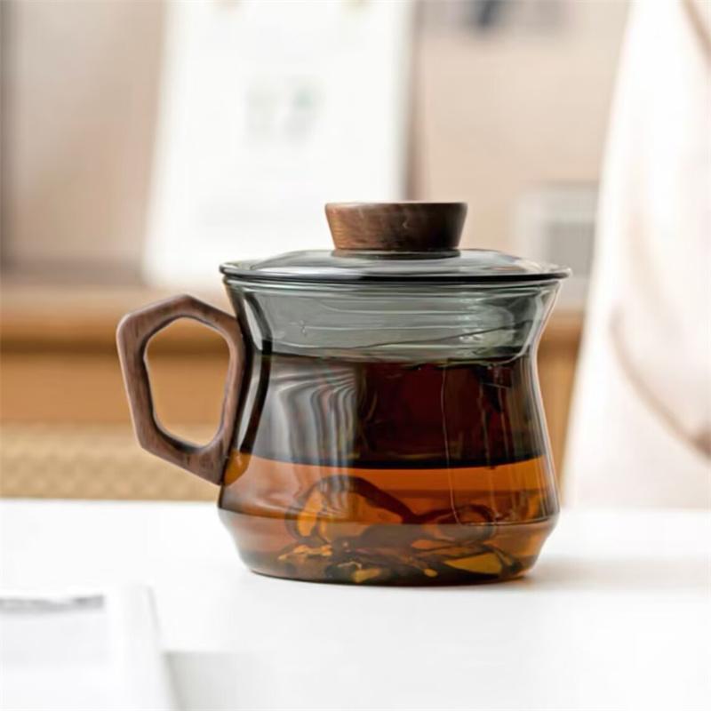 230ml Wooden Handle Heated Resistance Glass Tea Cup with Crescent Filter Office Teacup Brewing Puer Oolong Tea Mug