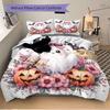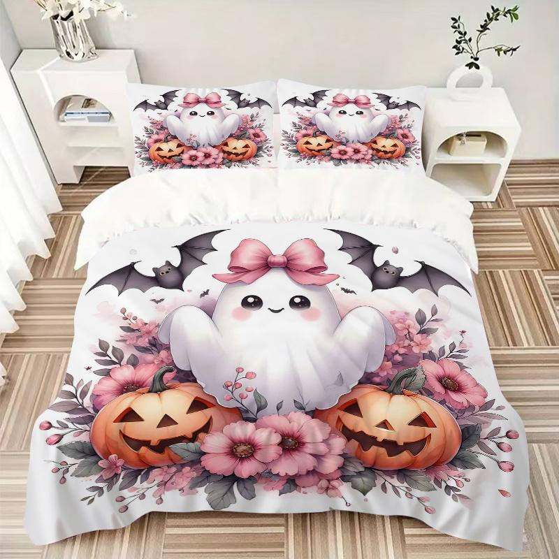 3pcs Pretty Ghost Pumpkin Flower Halloween Design Bedding Set - Includes Quilt Cover and Pillowcases, Suitable for All Seasons, Machine Washable