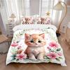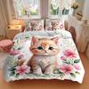 3pcs Cats & Flowers Pattern Bedding Three-Piece Set (1 Cover + 2 Pillowcases, No Fillings), This Printed Bedding Set Is Soft and Comfortable, Sui