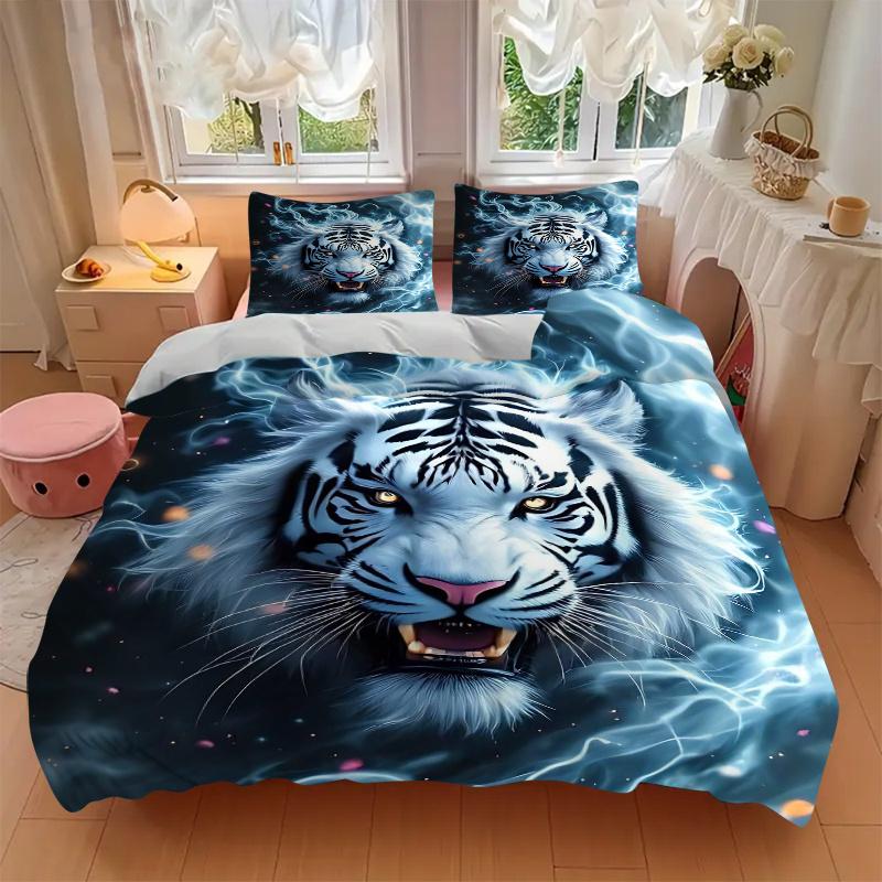 3pcs Flaming White Tiger Printed Bedding Set, Soft and Comfortable Quilt Cover for Bedroom, Guest Room (1 Duvet Cover + 2 Pillowcases, Pillow Cor