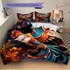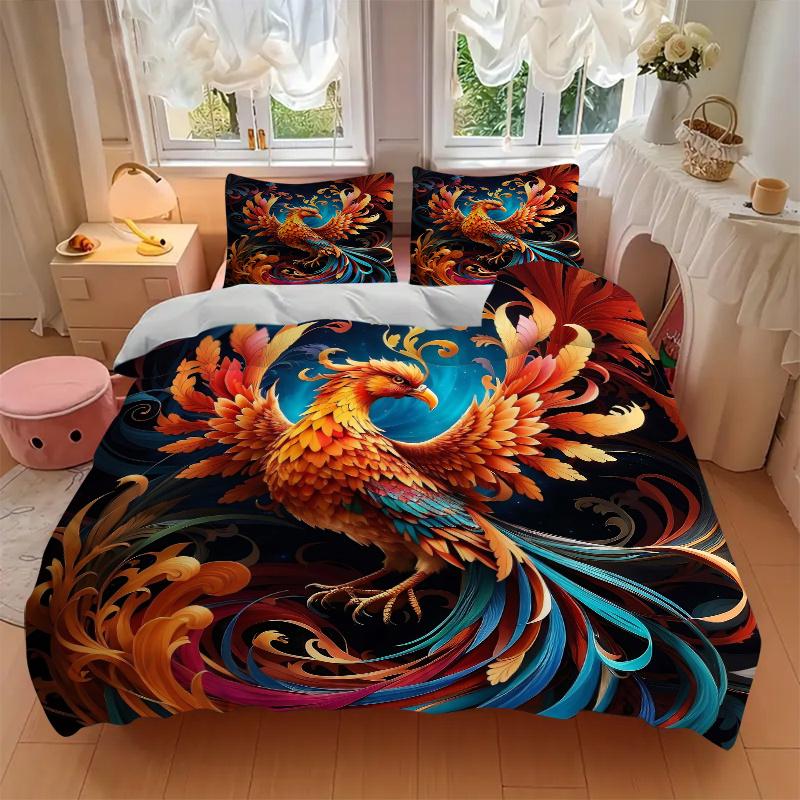 3pcs Flaming Phoenix Patterns Quilt Cover Set - Soft and Cozy Bedroom, Guest Room and Dorm Decorative Bedding 3-Piece Set 1 Quilt Cover + 2 Pillo
